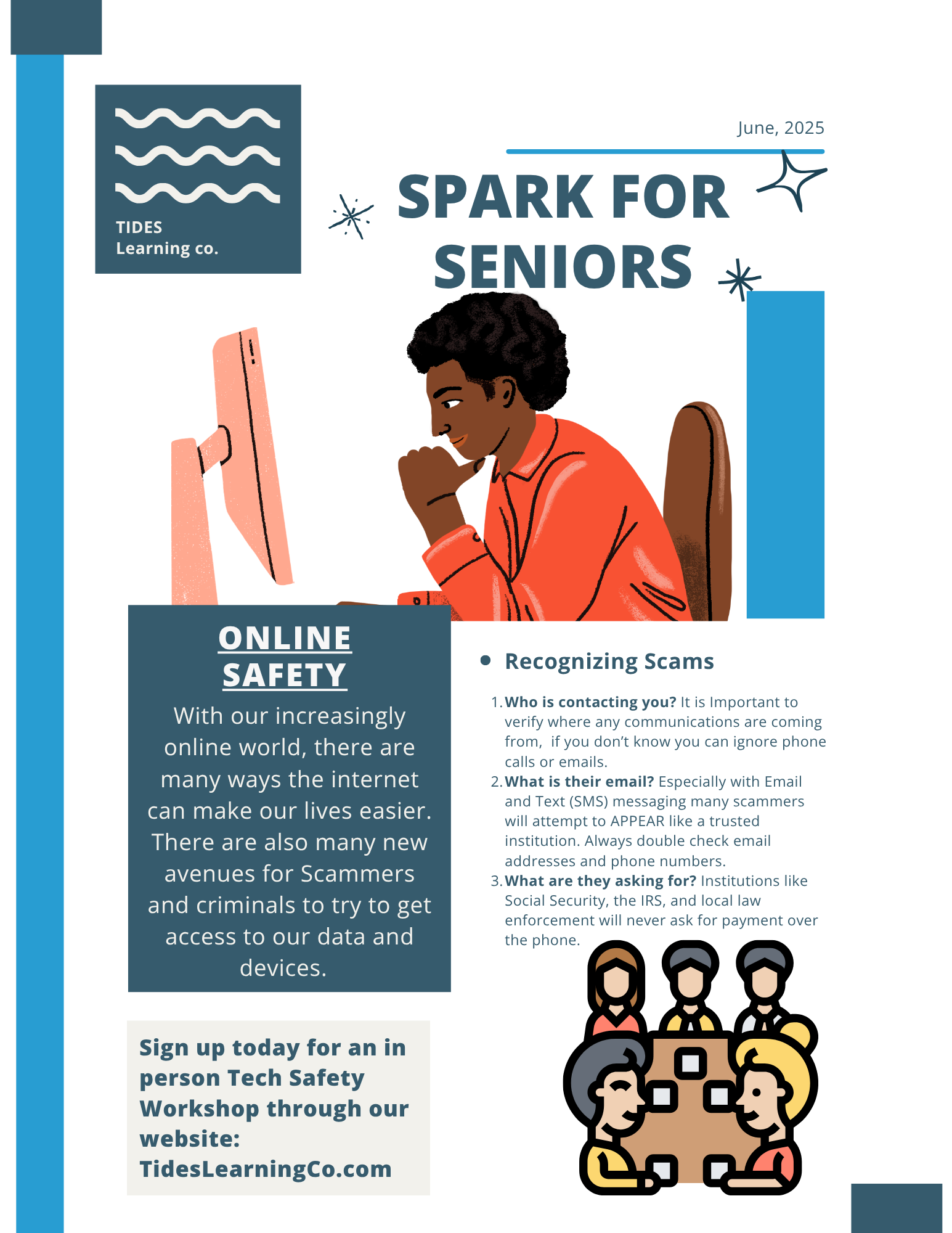 Here is the first issue of our “Spark for Seniors,” Tech Newsletter. Please Feel free to copy, share, print and circulate this to any senior that may find the information useful or helpful!